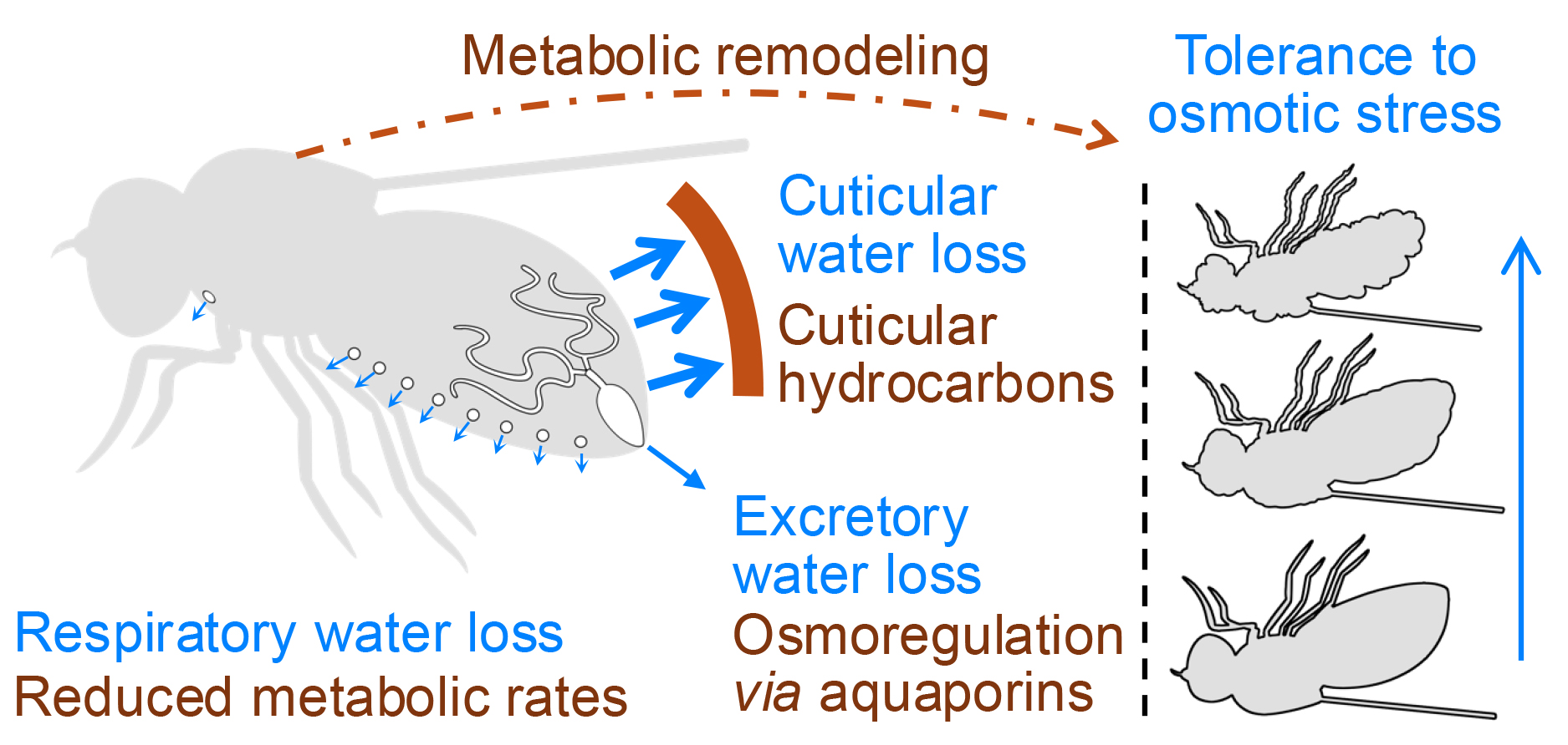 The overall goal of our research program is to elucidate the molecular basis underlying the evolution of novel physiological traits in arthropods as well as their adaptation to diverse and extreme environments. Although we do not limit our research program to specific organisms or traits, the current projects mainly focus on the traits that contribute to desiccation resistance/tolerance and adaptation to dry habitats including the extremely dry deserts. We will also investigate the molecular basis underlying physiological adaptation of agricultural and horticultural pests.